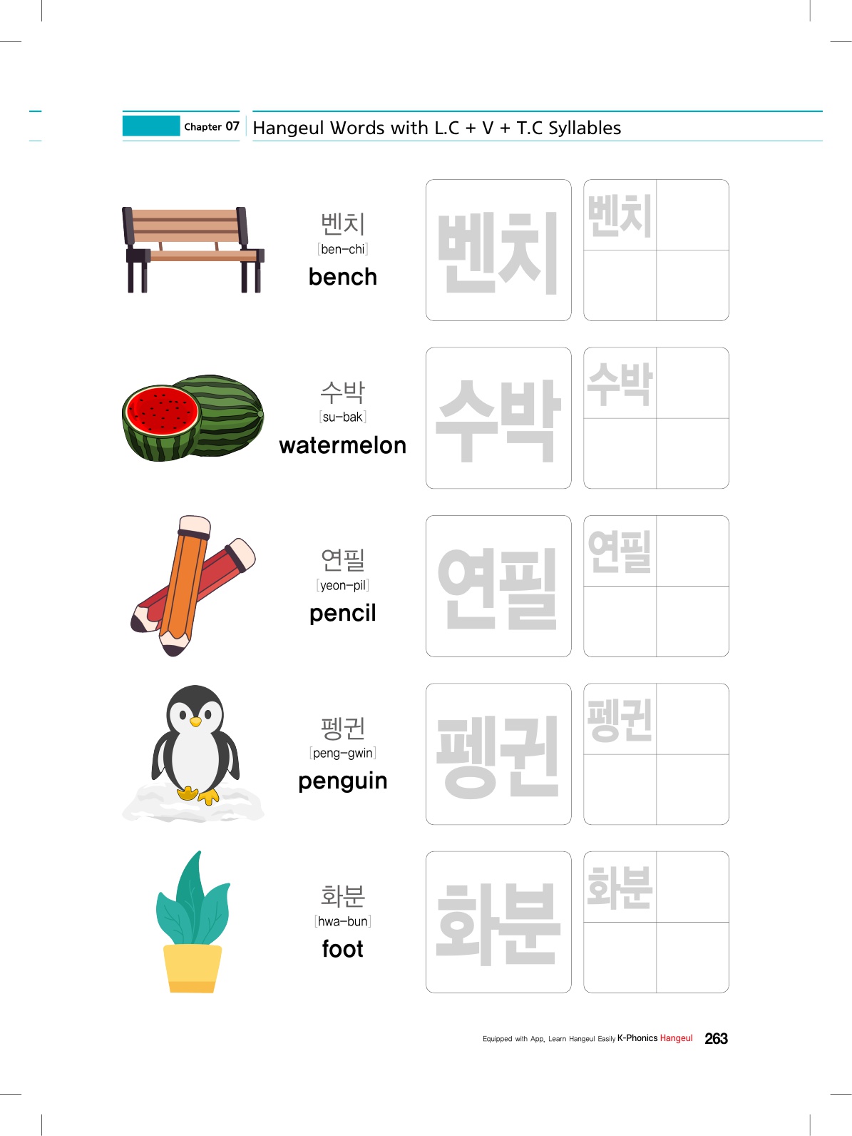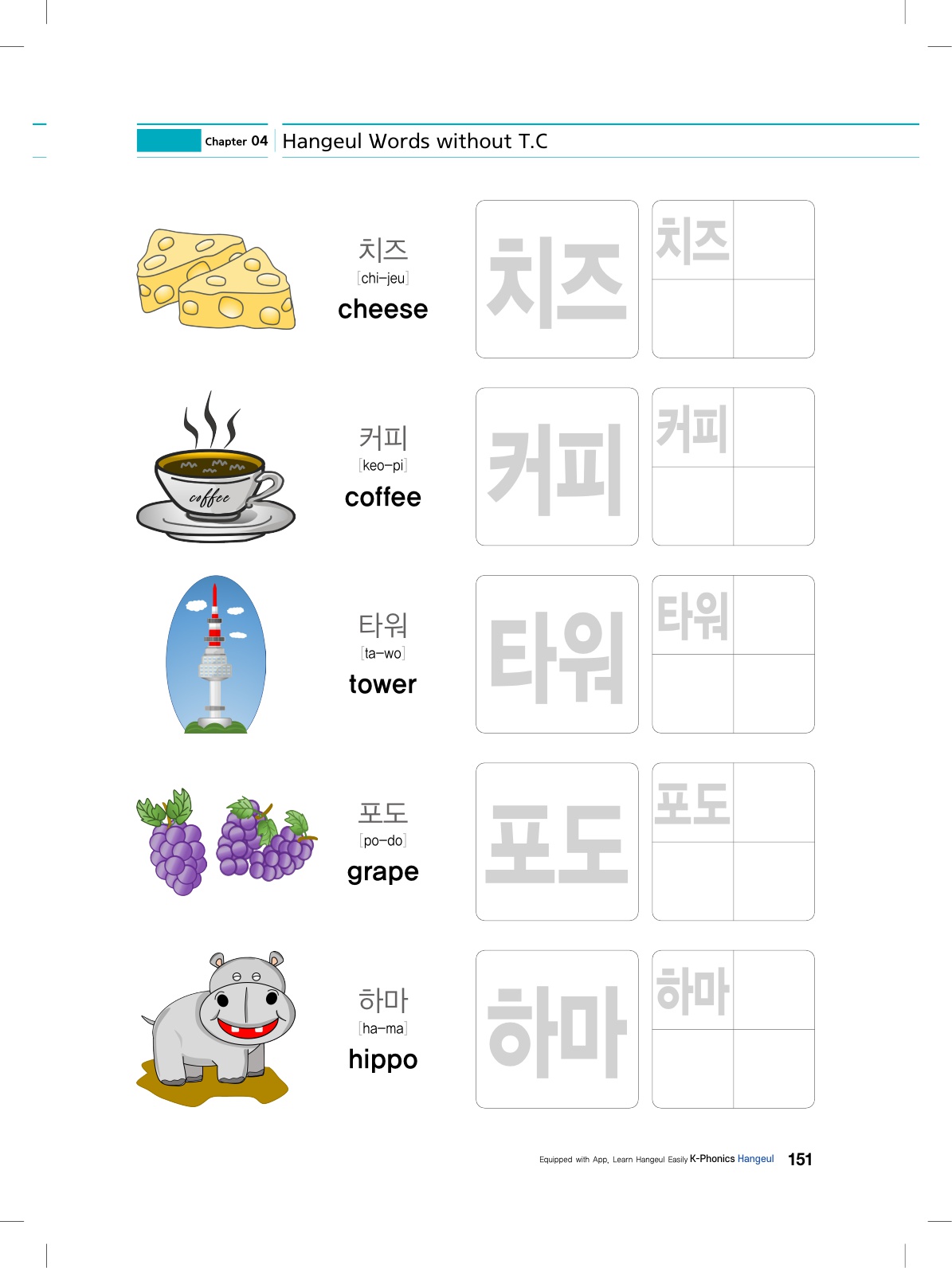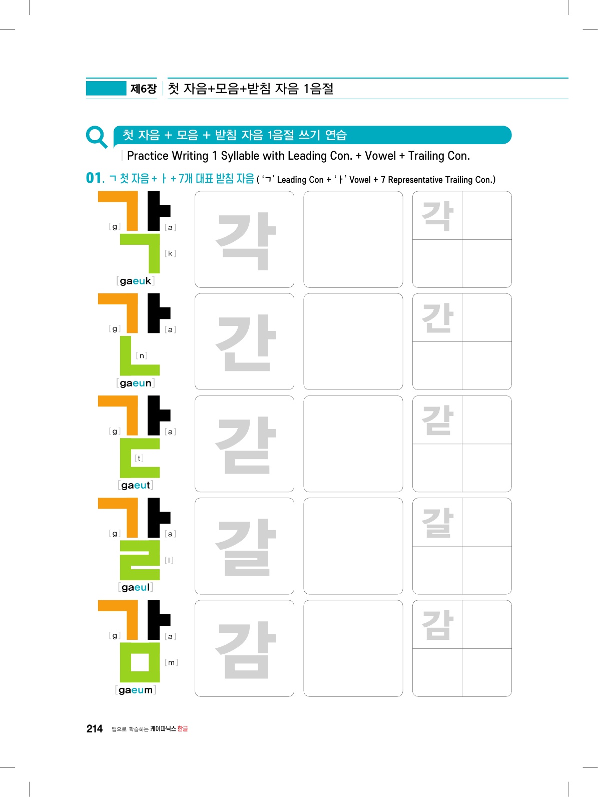 모음, 자음, 받침자음, 낱말구성, 음운규칙, 문장읽기 순으로 한글을 쉽게 배울 수 있게 구성 되었습니다